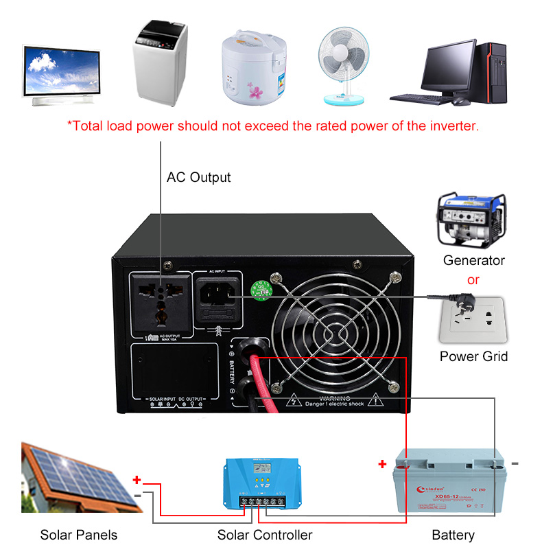 A: Pure sine wave output inverter is just as good as the public power grid, even better. Low repaired rate, long lifespan, without harmonic pollution, enviromental-friendly and appliances protected.