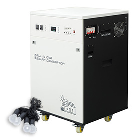 | Solar generator: 1. Combine inverter/solar controller/battery all in one cabinet. 2. Built-in 48V/60A MPPT solar controller. 3. Built-in 48V/7000W solar inverter. 4. Built-in 4pcs 12V/200Ah battery. 5. Low frequency pure sine wave output .6. Multiple output: 2*AC output socket, 4*DC 12V, 4*USB. 7. With 4pcs 3W bulbs, 4pcs 5m wires with switch. 8. LVD/HVD/Charging voltage adjutable, suitable for kinds of battery.9. Automatic AC charger and AC mains switcher, switch time ≤ 4ms. 0. AC charging current 0-30A selectable. |